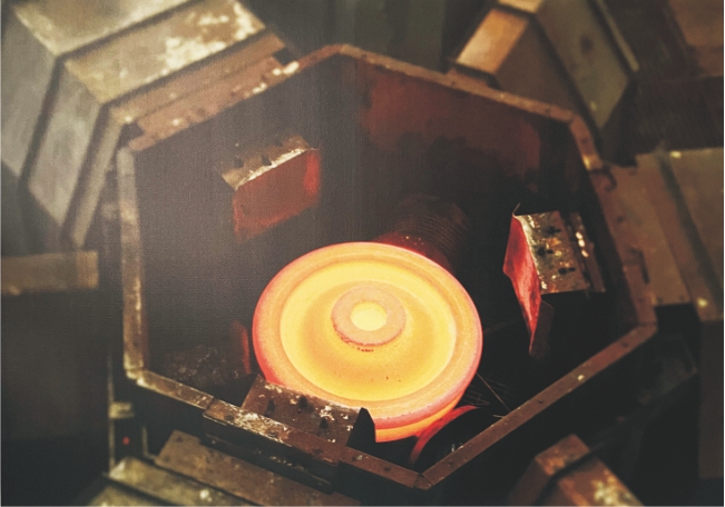 通過隧道加熱爐,實現(xiàn)車輪退火、淬火加熱、回火處理,利用脈沖比例控溫實現(xiàn)溫度均勻性±5℃,整個熱處理過程由信息化系統(tǒng)自動跟蹤運行。