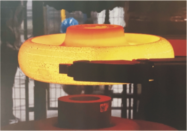 車輪預(yù)成型在50MN框架式油壓機上完成,壓至工藝要求高度后實現(xiàn)金屬的第一次a分配。